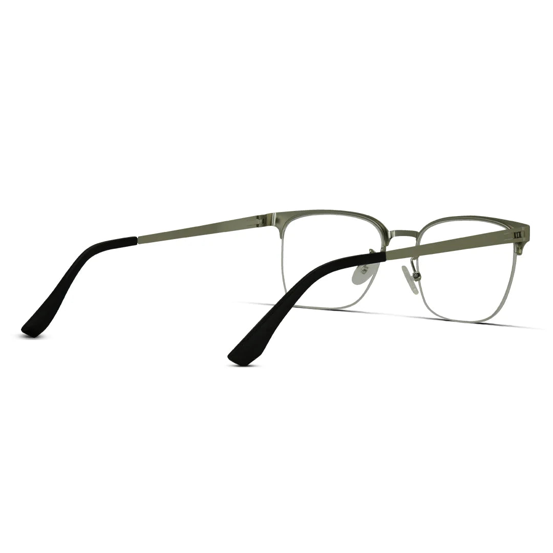 Elegant Silver Semi-Rim Glasses – Classic Metal Frame Men Eyewear